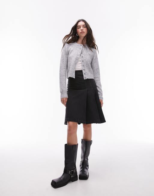 Topshop - Plisseret knælang nederdel i denim med sort vask