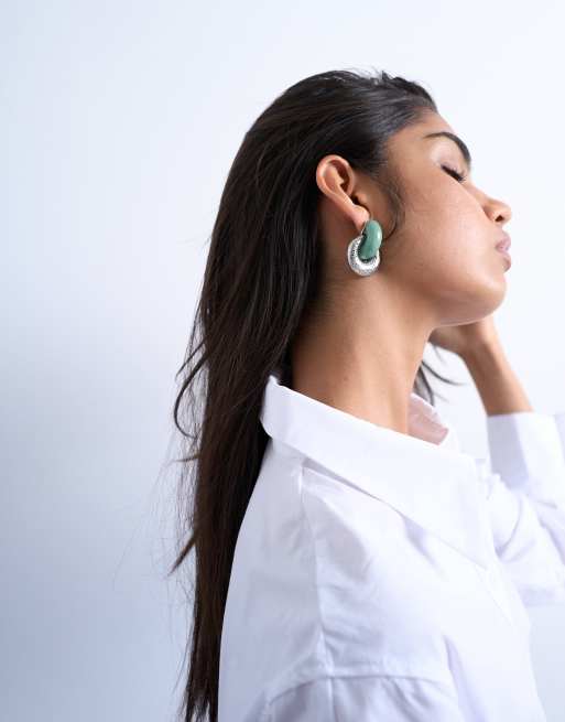 Topshop - Poppi - Sølvfarvede øreringe med halvædelsten og dørhammer-design