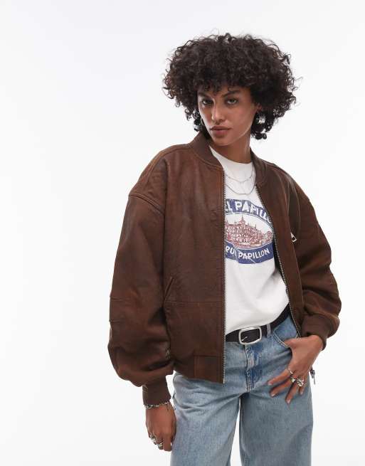 Topshop - Premium - Brun bomber-jakke i ægte ruskind