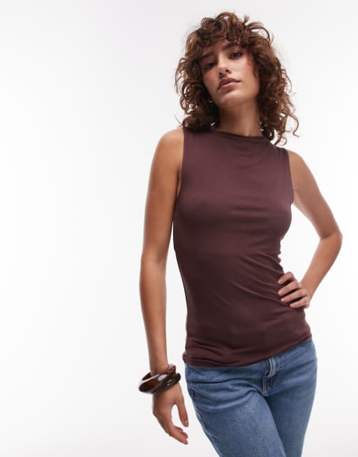 Topshop - Premium - Chokoladebrun tanktop med bred halsudskæring