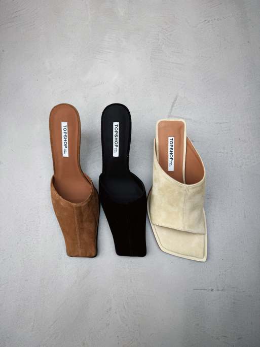 Topshop - Premium - Ilya - Offwhite mules i ruskind med firkantet og åben snude