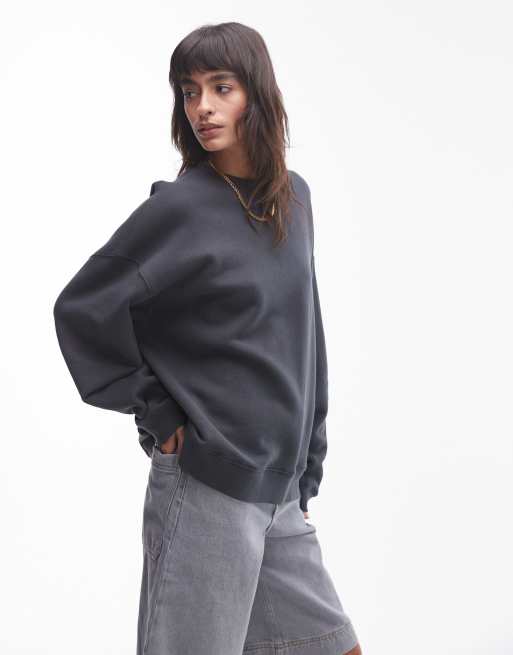 Topshop - Premium - Skifergrå sweatshirt med sømdetaljer