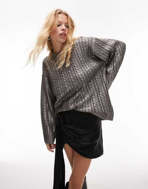 Topshop - Premium - Sølvfarvet metallisk trøje i kabelstrik