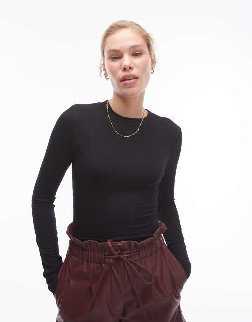 Topshop - Premium - Sort, ribstrikket og langærmet top