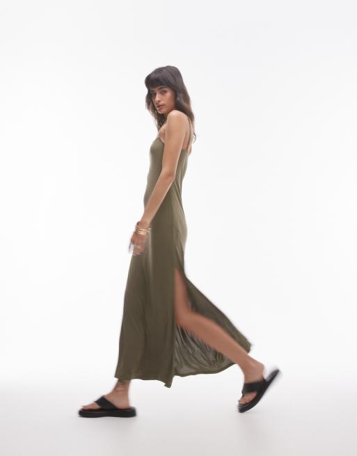 Topshop - Premium - Superblød cami-midikjole med firkantet hals i kakigrøn
