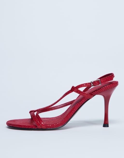 Topshop - Røde og højhælede Felicity-sandaler med stropper og slangeskindstekstur