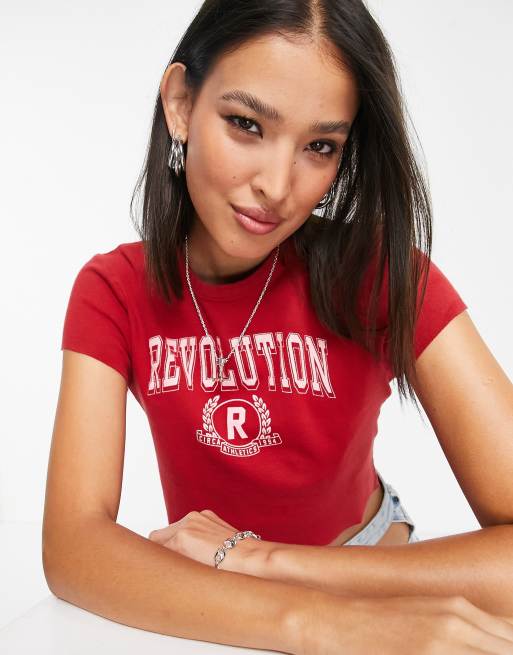 Topshop - Revolution - Rød T-shirt med college-print