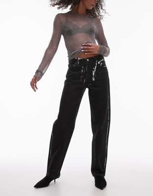 Topshop - Runway - Sorte og coatede jeans med lige ben og mellemhøj talje