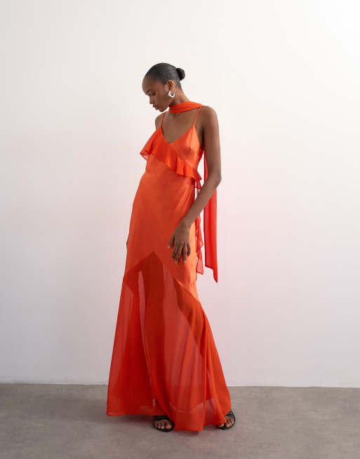 Topshop - Rustrød maxikjole med flæsedetaljer i blandet stof
