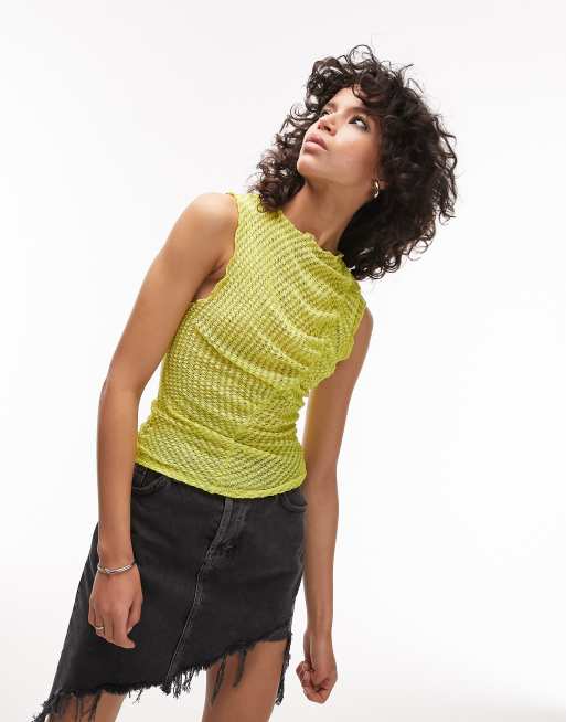 Topshop - Rynket asymmetrisk top med tekstur i limegrøn