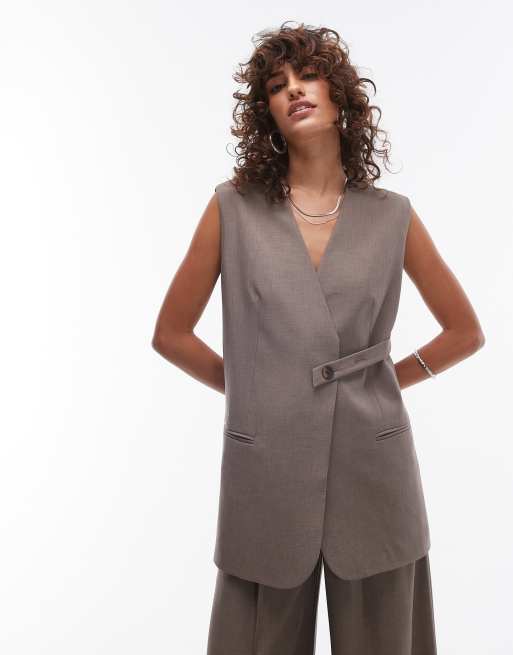 Topshop - Sandfarvet habitvest uden ærmer med mærkedetalje - Del af sæt