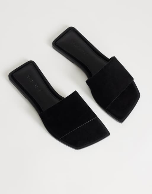 Topshop - Sara - Sorte flade mule-sandaler i ægte ruskind