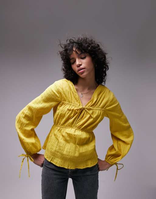 Topshop - Sennepsgul bomuldstop med bindebånd foran