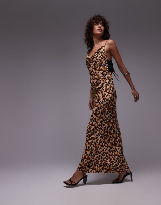Topshop - Slip-midikjole i abstrakt prikket print med snoet og sort ryg og vandfaldsudskæring