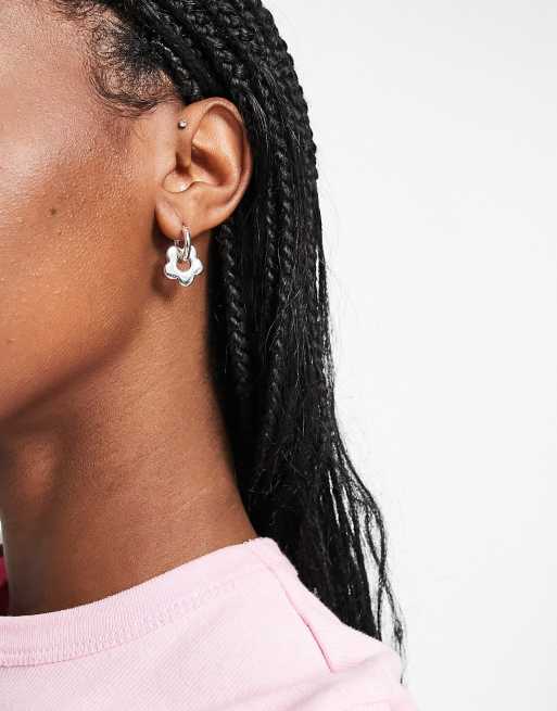 Topshop - Sølvfarvede hoop-øreringe med blomstervedhæng