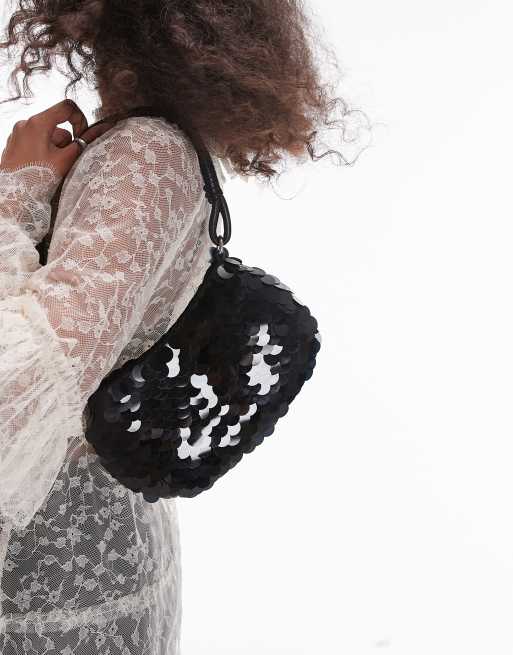Topshop - Sonia - Sort skuldertaske med pailletter