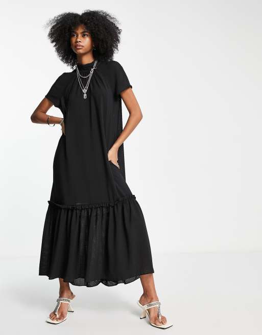 Topshop - Sort maxikjole med bindebånd i halsen og peplumkant