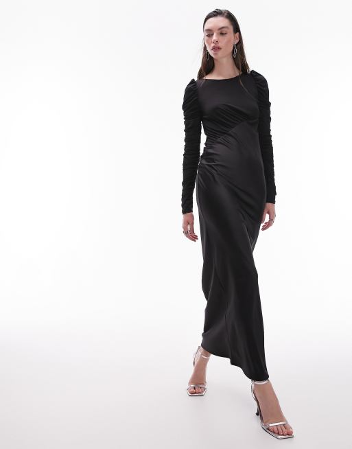 Topshop - Sort maxikjole med lange ærmer i jersey og satin