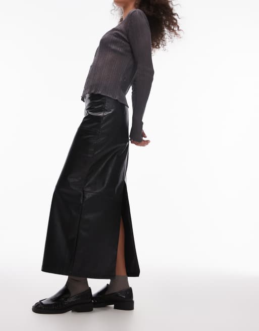 Topshop - Sort midinederdel med paneler i imiteret læder
