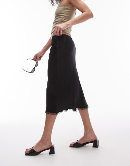Topshop - Sort nederdel med blondekant og trusse-taljebånd i 90'er-længde