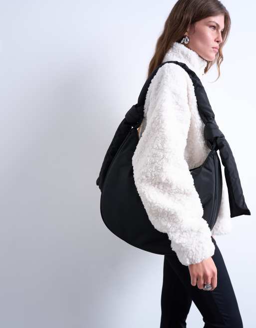 Topshop - Sort nylon-skuldertaske med lynlåslomme