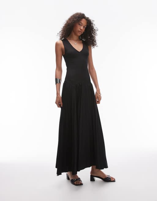 Topshop - Sort plisseret midikjole med V-hals i jersey