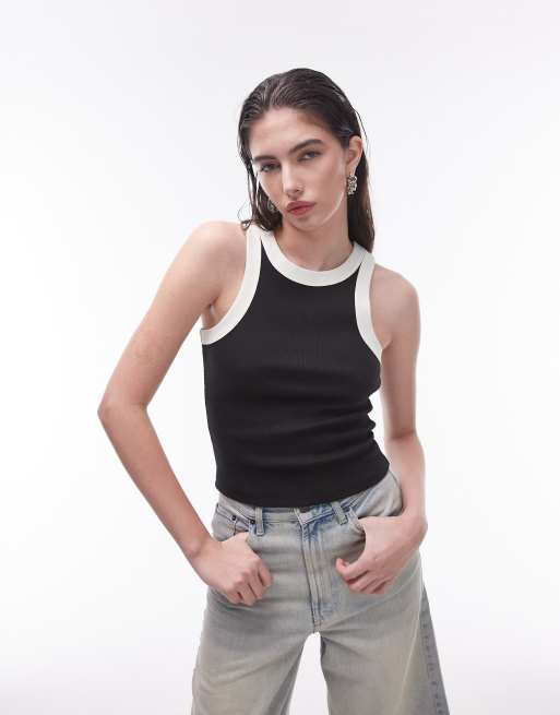 Topshop - Sort raceroverdel med kontrasterende detaljer
