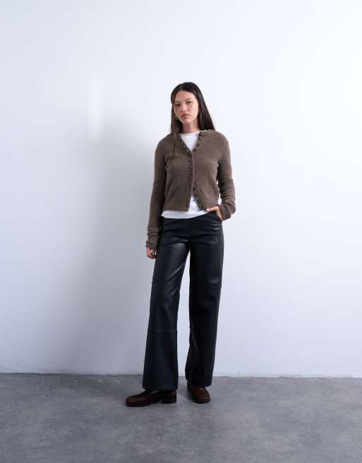 Topshop - Sorte bukser med lige ben i imiteret læder med sømdetaljer