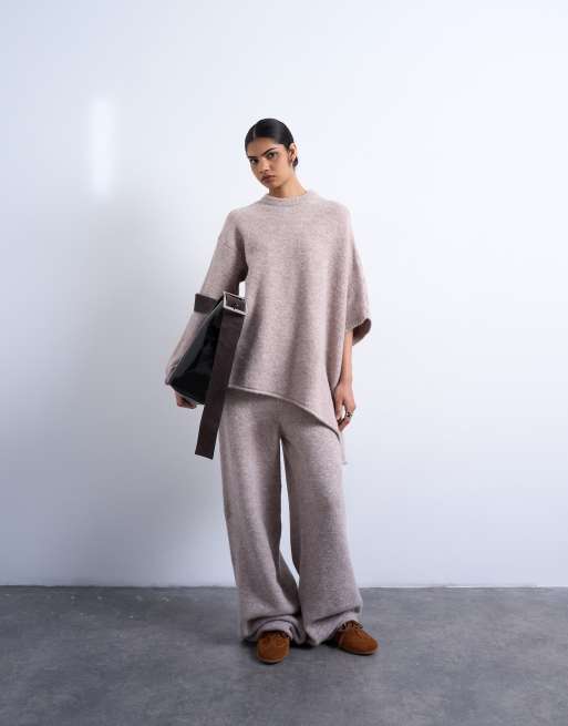 Topshop - Sæt med bukser og løstsiddende poncho i strik