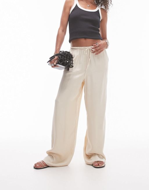 Topshop - Østersfarvede bukser med løbesnor i satin
