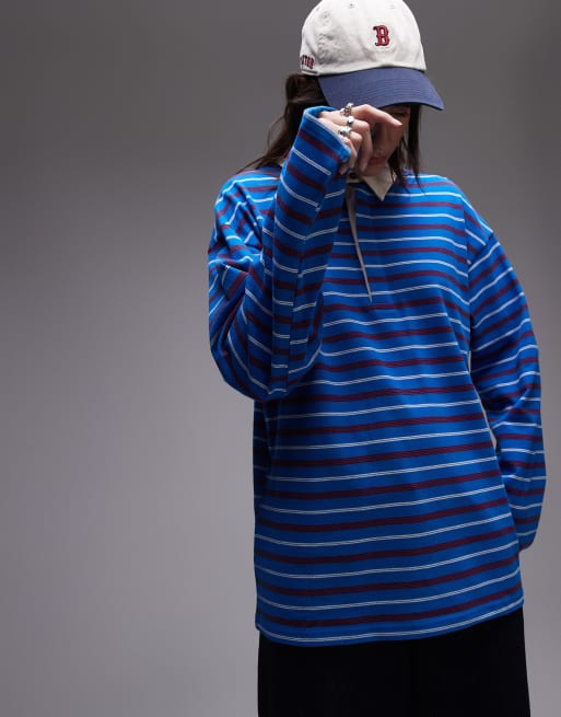 Topshop - Stribet polotrøje med lange ærmer i blå