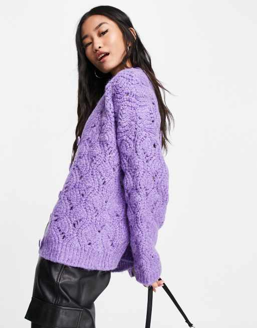 Topshop - Strikket cardigan med hulmønster i lyslilla