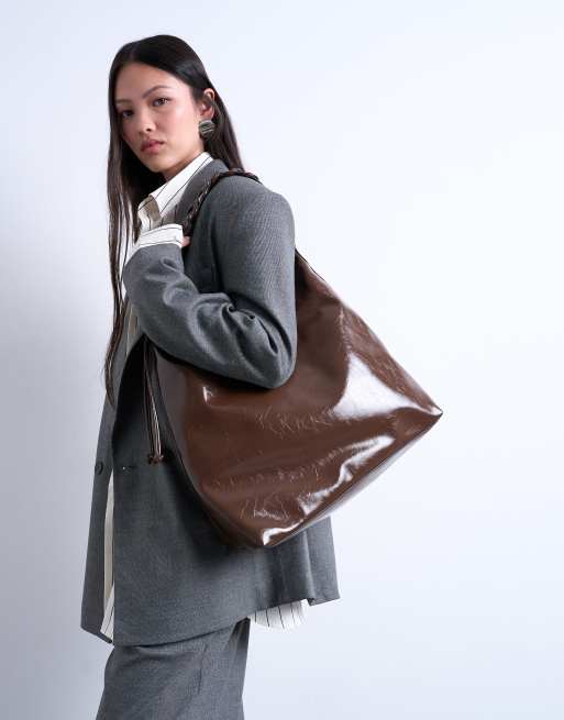 Topshop - Tatum - Chokoladebrun tote-taske med tungesting