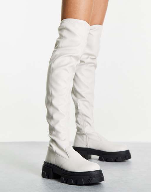 Topshop - Taylor - Råhvide overknee-støvler med stretch