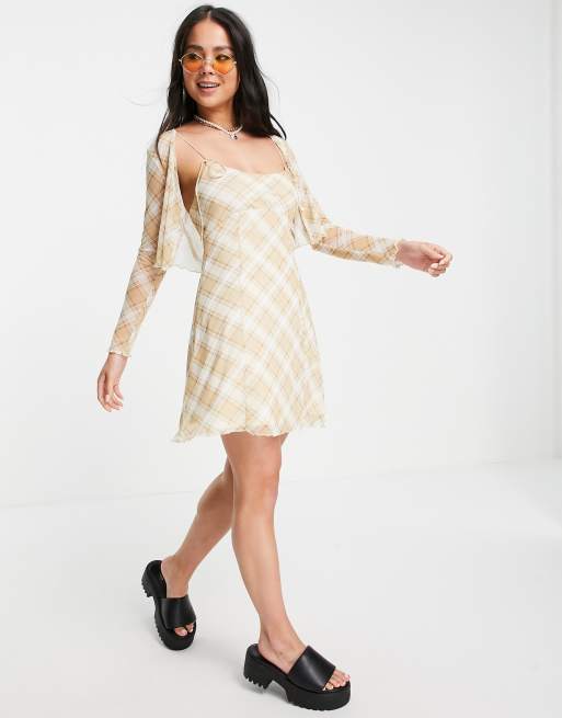 Topshop - Ternet slip-minikjole med cardigan i naturfarvet jersey