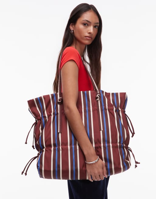 Topshop - Tino - Bordeauxrød og stribet totebag i nylon med rynker