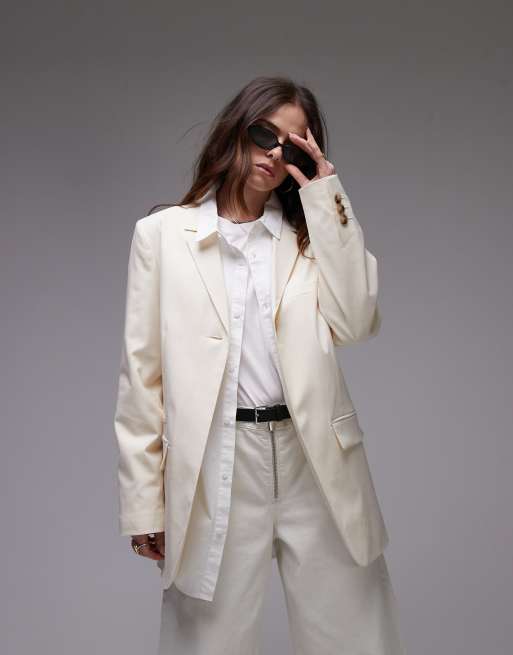 Topshop - Tonic - Cremehvid skræddersyet blazer med høj halslukning