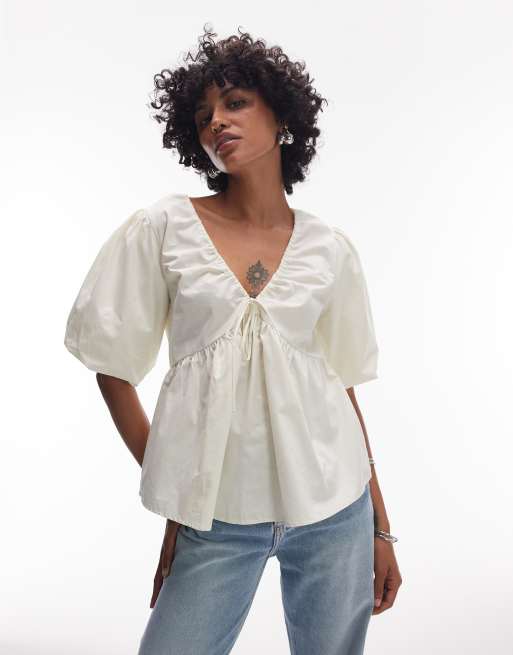Topshop - Top med pufærmer i poplin