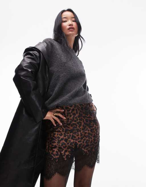 Topshop - Underkjole med leopardprint og sorte blonder i satin