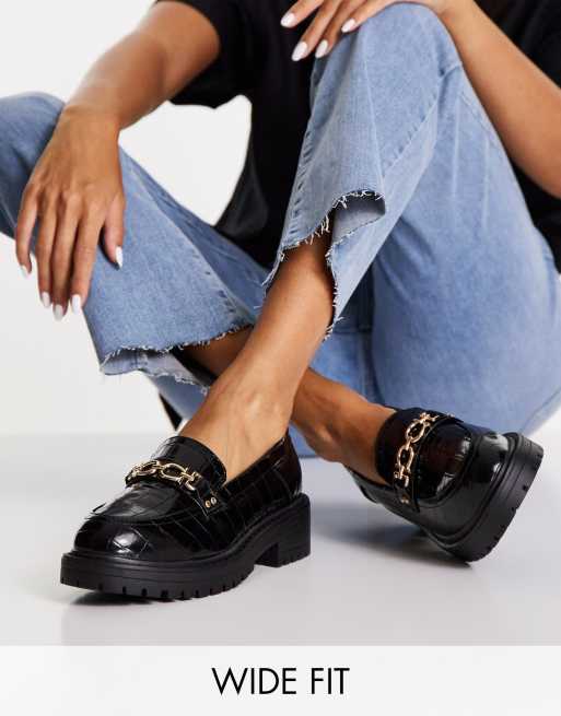 Topshop Wide Fit - Luka - Sorte loafer med kæde