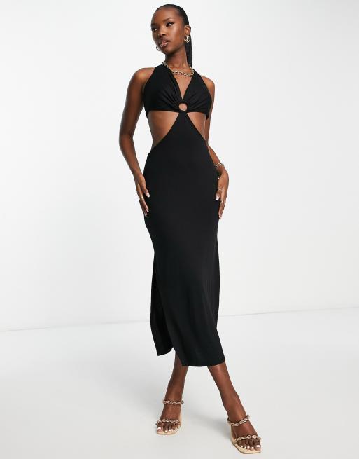 Trendyol - Sort halterneck-midikjole med udskæringer