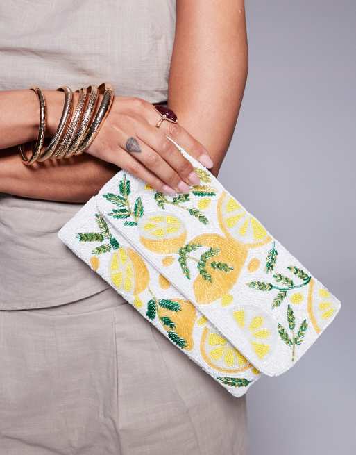 True Decadence - Hvid og gul clutch-tasker med perler i citrondesign