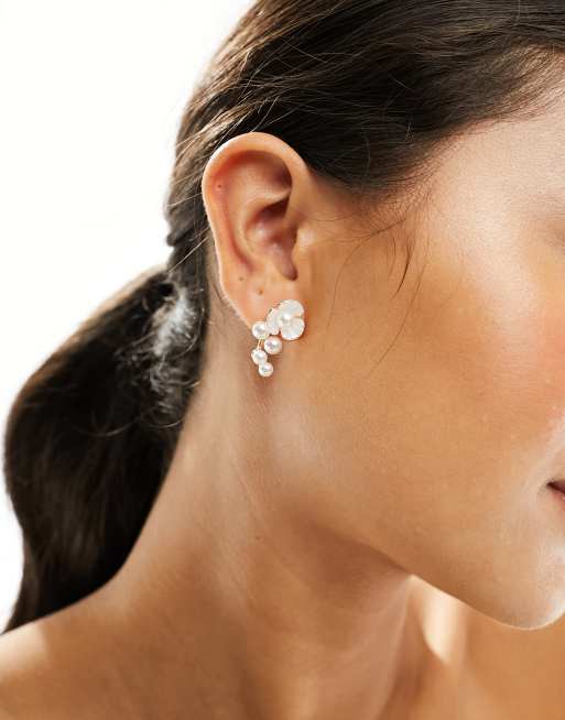 True Decadence - Hvid øreringe med graduerede perler og blomsterdesign