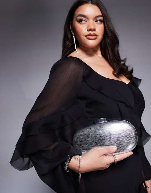 True Decadence - Metallic sølvfarvet tekstureret clutch-taske