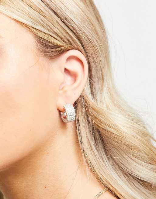 True Decadence - Sølvfarvede chunky huggy-hoop-øreringe med rhinsten