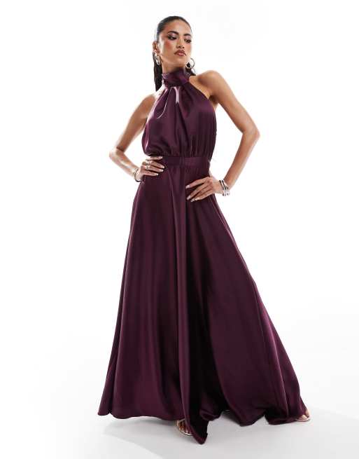 True Violet - Mørk blommefarvet maxikjole med halterneck i satin