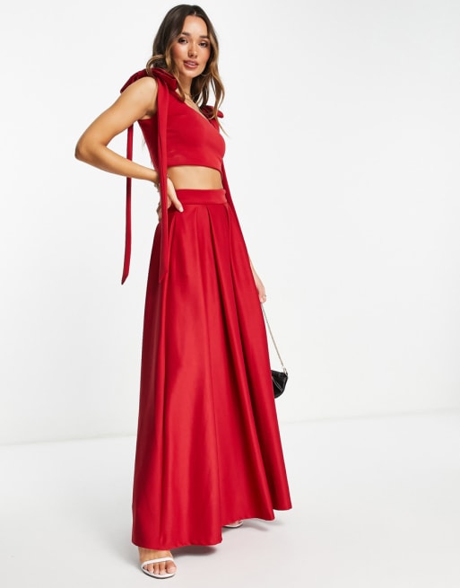 True Violet - Sæt med croptop med sløjfeskulder og maxinederdel med lommer