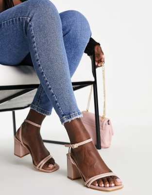 Truffle Collection - Beige små sandaler med firkantet tå og blokhæl