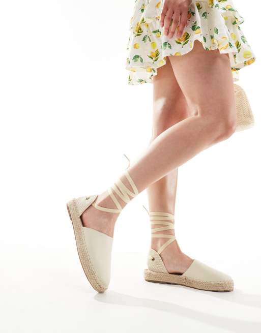Truffle Collection - Cremehvide espadriller med bindebånd om anklerne