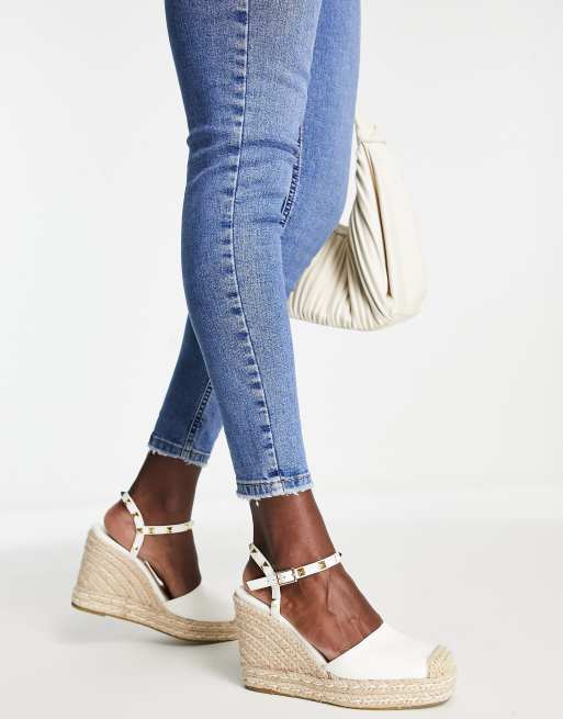 Truffle Collection - Hvide espadriller med remme med nitter